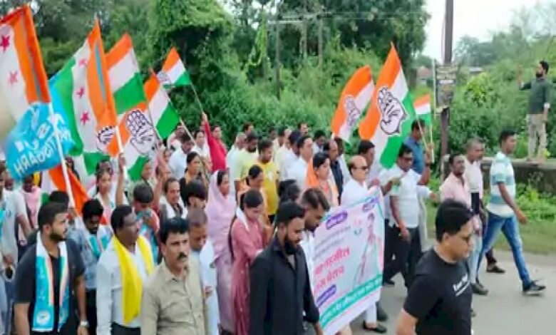 खाद की किल्लत के विरुद्ध कांग्रेस का विरोध प्रदर्शन, रायगढ़ में निकाली विशाल रैली