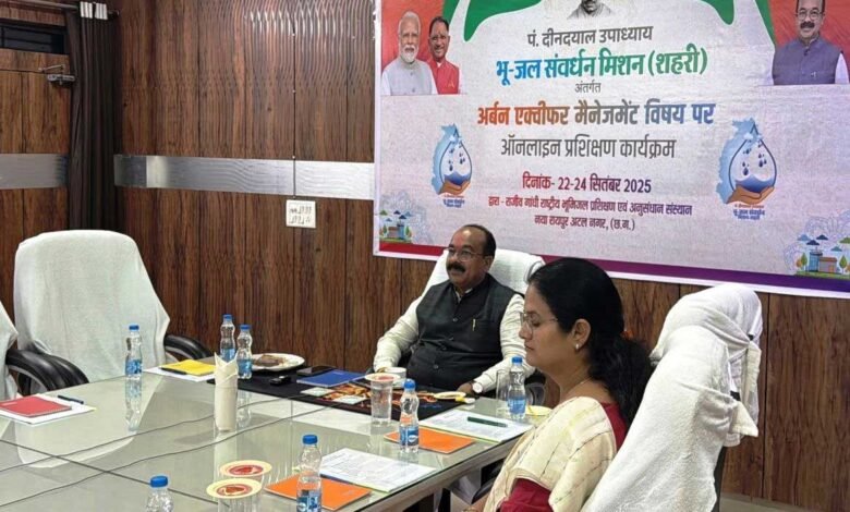 उप मुख्यमंत्री श्री साव ने कहा कि नगरों के विकास की योजना बनाते समय जल संरक्षण को प्राथमिकता से शामिल करना होगा। जल संचय और रिचार्जिंग सिस्टम के लिए जरूरी बुनियादी ढांचा विकसित करना होगा। उन्होंने सभी अधिकारियों से प्रशिक्षण का पूरा लाभ लेने को कहा। श्री साव ने राजीव गांधी राष्ट्रीय भूमिजल प्रशिक्षण एवं अनुसंधान संस्थान के साथ ही प्रशिक्षण दे रहे सभी विशेषज्ञों के प्रति आभार व्यक्त करते हुए कहा कि उनके सहयोग से हम नगरीय निकायों में भू-जल के संरक्षण और रिचार्ज के लिए प्रभावी काम कर सकेंगे। राज्य शहरी विकास अभिकरण (SUDA) के सीईओ श्री शशांक पाण्डेय सहित नगरीय प्रशासन विभाग एवं सुडा के वरिष्ठ अधिकारी भी प्रशिक्षण से ऑनलाइन जुड़े।