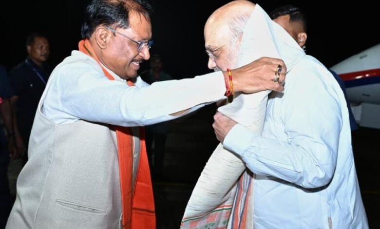 केंद्रीय गृह मंत्री श्री अमित शाह का मुख्यमंत्री श्री विष्णुदेव साय ने स्वामी विवेकानंद विमानतल पर किया आत्मीय स्वागत